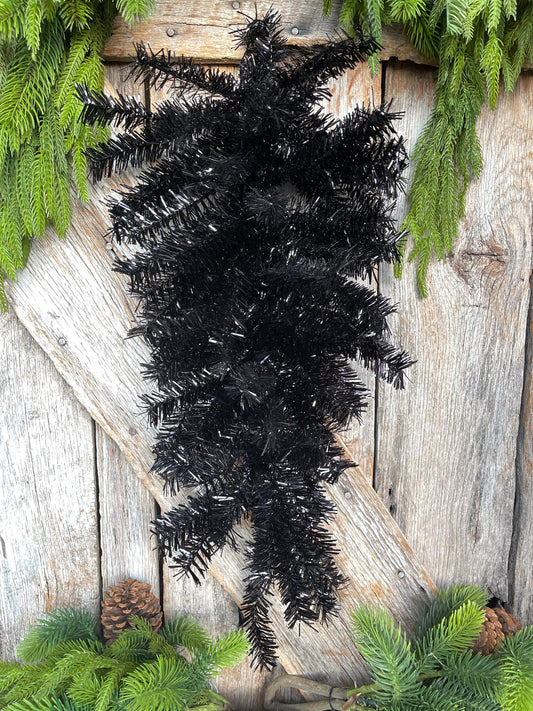 24" Black Teardrop Pine Swag, Swag Base, Black Pine Wreath