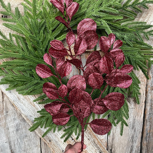 Burgundy Glitter Leaf Spray: 24" Holiday Tree Decor