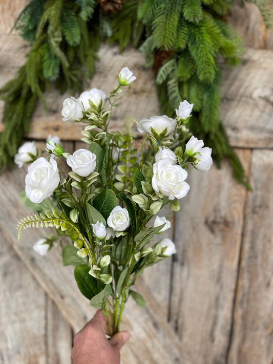 22" White Rose Bush, Artificial Rose Bush, White Roses