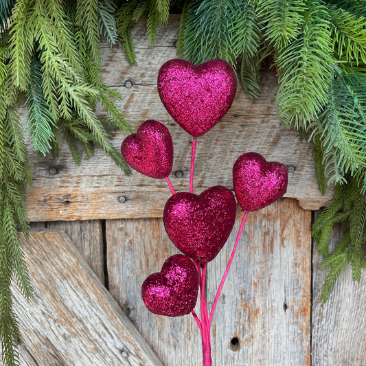 19" Hot Pink Heart Spray, Valentine's Heart Stem, Valentine Spray