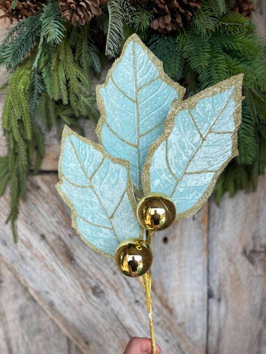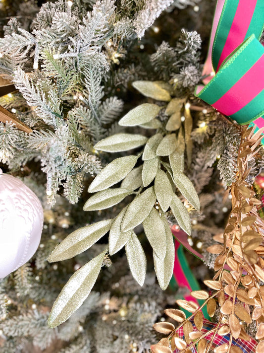 27" Mint Green Laurel Leaf Spray, Mint Sparkle Leaf Spray, Light Green Christmas Picks Stems
