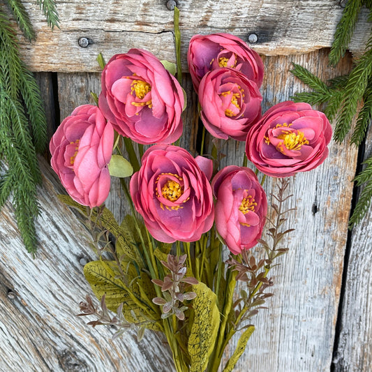 20" Mauve Ranunculus Bush, Fall Floral Bush, Fall Ranunculus Bush