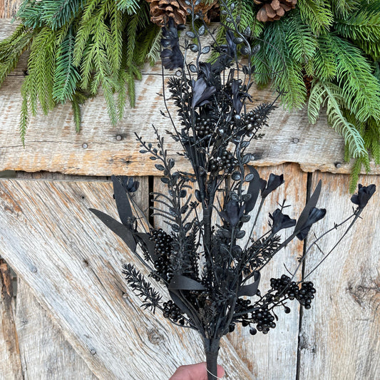 24" Halloween Spray, 60919, Black MIxed Leaf Spray