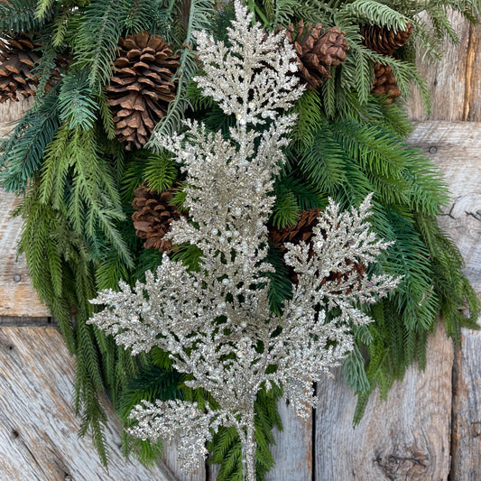 33" Glitter Pearl Twig Spray, Platinum Christmas Tree Picks & Stems, Christmas Tree Spray