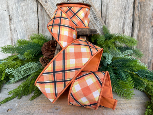 Candy Corn Plaid Wired Ribbon: Halloween Fall Decor, 2.5" x 10 Yards