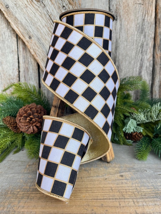 2.5" Black and White Check Ribbon, Christmas Ribbon
