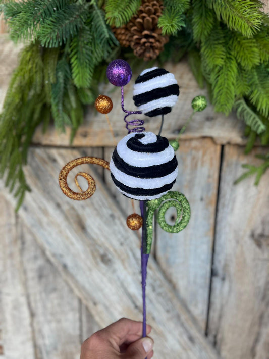 16" Black White Ball Spray, Halloween, Black White Ball Pick Spray
