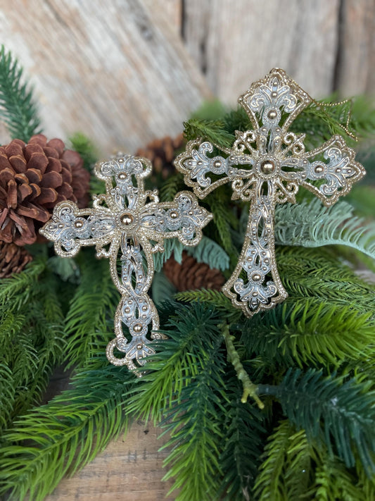6" Cross Ornaments, Gold Silver Cross Ornament, Religious Ornaments