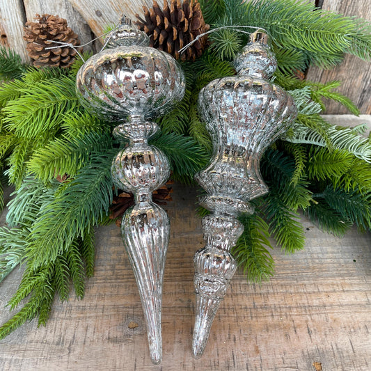 Set of 2 - 12" Silver Finial Ornament, Shatterproof Ornaments, Finial Ornaments