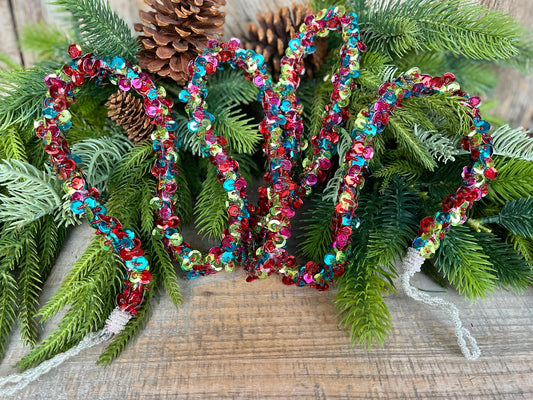 72" Retro Sequin Garland, Christmas Tree Garland, Colorful Sequin Garland