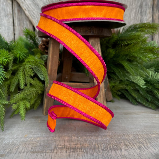 1" Pink Orange Sherbert Velvet Ribbon, Farrisilk Ribbon, Wired Ribbon