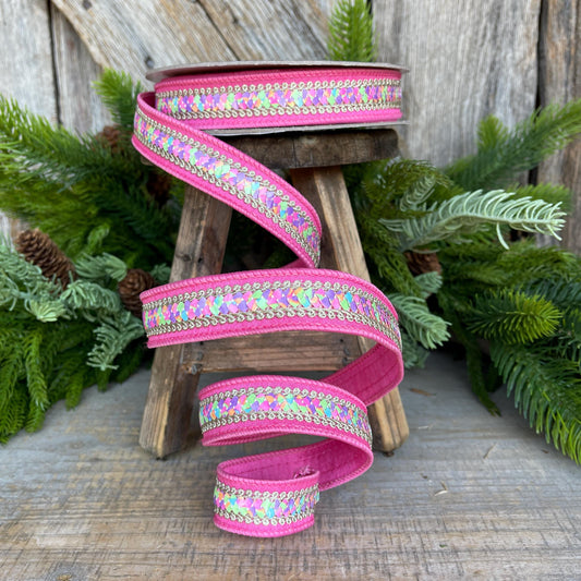 1" Pink Twinkle Trim Ribbon, Farrisilk ribbon, Pink Jeweled RIbbon
