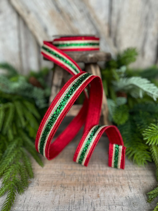 1" Red Green Gold Ribbon, Christmas ribbon, Green Red RIbbon