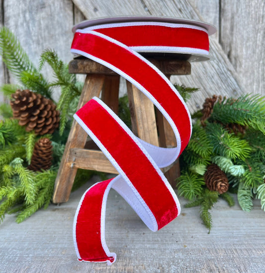1" Red and White Two Tone Velvet, Farrisilk ribbon, velvet ribbon