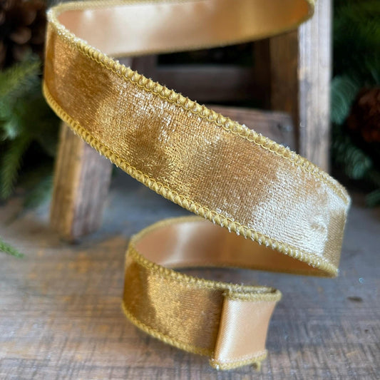1" Gold Silken Velvet Ribbon, Farrisilk Ribbon, Wired Ribbon