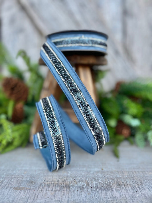1" Steel Blue RIbbon, Farrisilk Ribbon, Blue Wired RIbbon