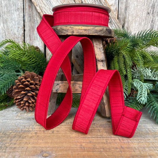 1” Red Dupion Ribbon, Farrisilk ribbon, Christmas Ribbon