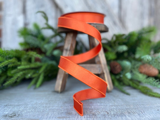 1" Orange Satin Ribbon, Farrisilk Ribbon, Wired Ribbon