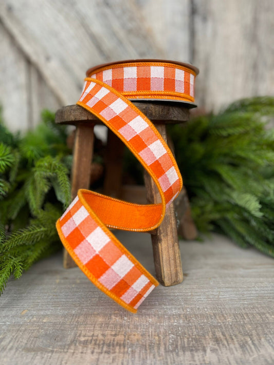 1" Orange White Check Ribbon, Farrisilk Ribbon, Easter Ribbon