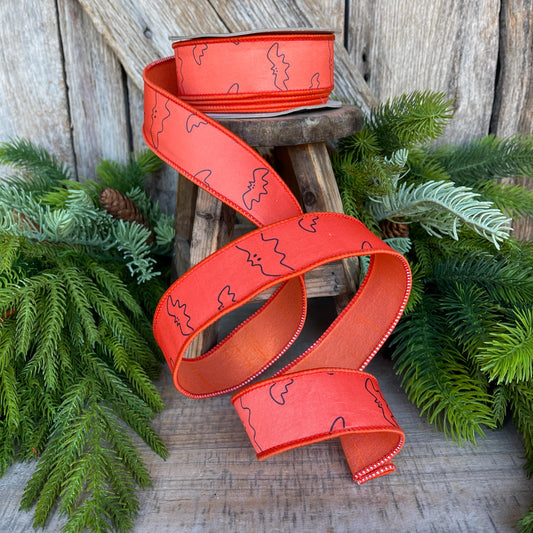 1.5" Orange Bat Ribbon, Farrisilk Ribbon, Halloween Ribbon