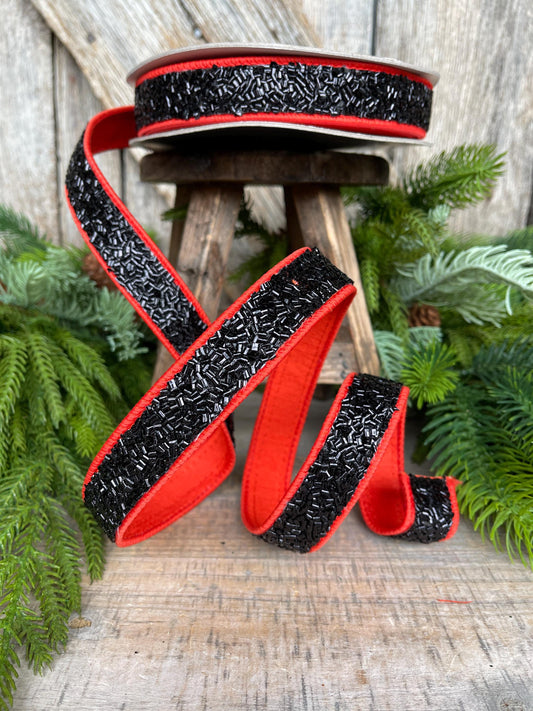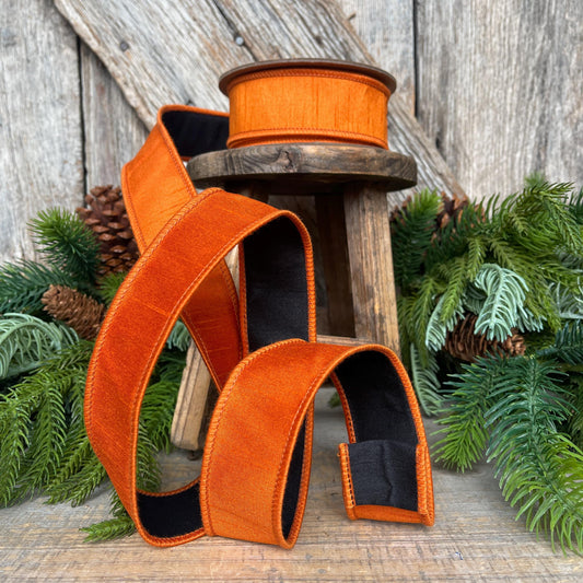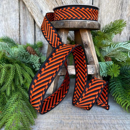 1.5" Orange Black Ribbon, Halloween Ribbon, Wired Ribbon