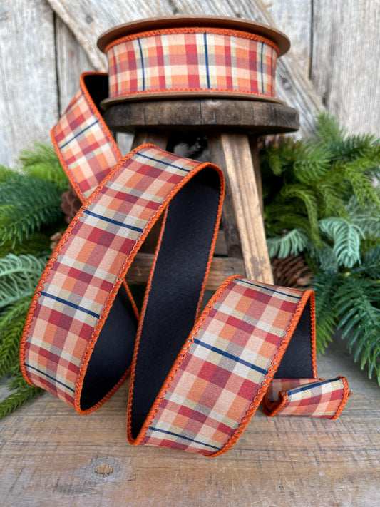 2.5" Fall Plaid Ribbon, Red Orange Prescott Plaid Ribbon, Farrisilk Ribbon