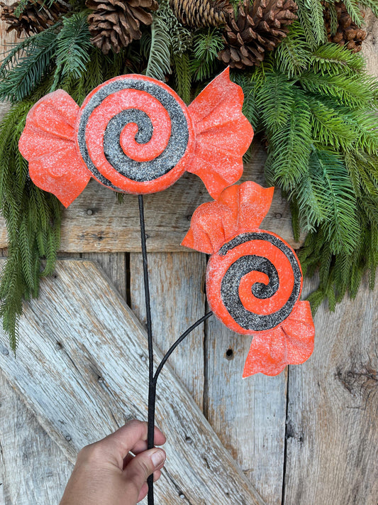 Orange Halloween Candy Lollipop Floral Pick: Orange & Black Candy Spray, 28 inches
