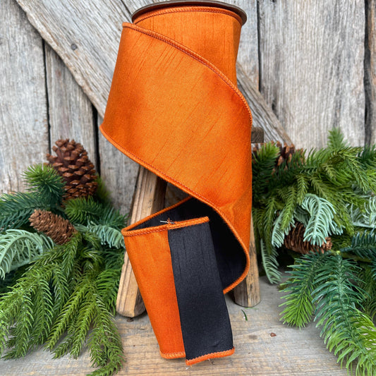 2.5" Orange Cinnamon Taffeta Ribbon, Farrisilk Ribbon, Wired Ribbon