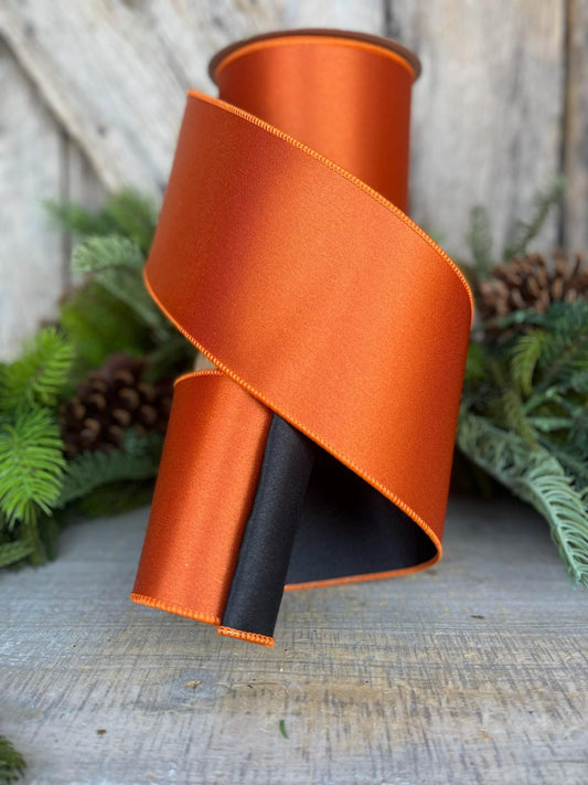 4" Orange Black Satin Ribbon, Farrisilk Ribbon, Wired Ribbon