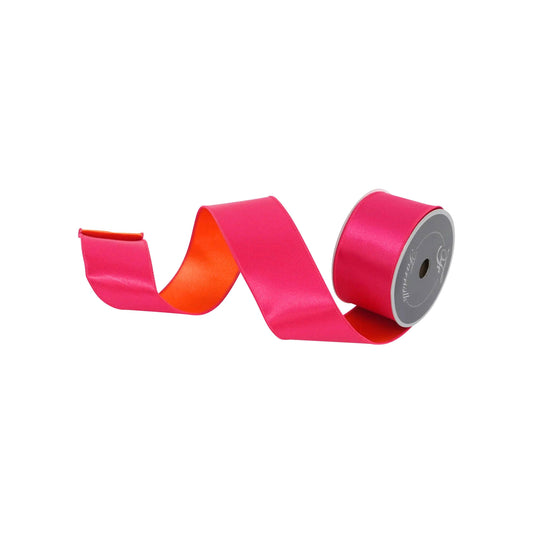 2.5" Pink Orange Satin Ribbon, Farrisilk Ribbon, Wired Ribbon