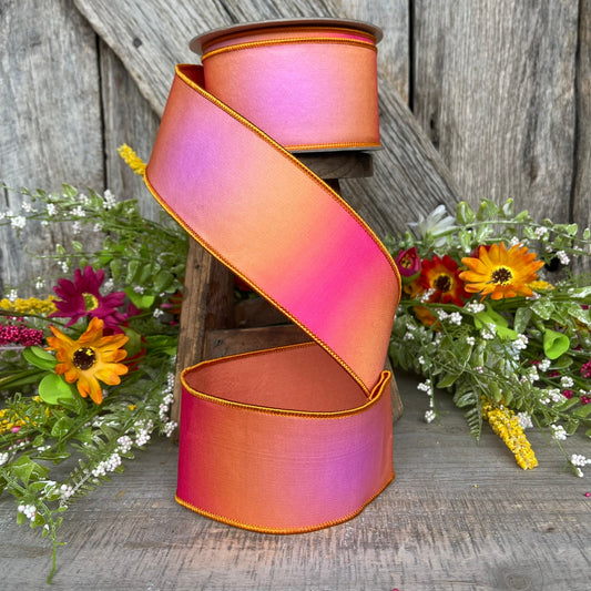 2.5" Pink Orange Prismatic Ribbon, Farrisilk RIbbon, Pink Wired RIbbon
