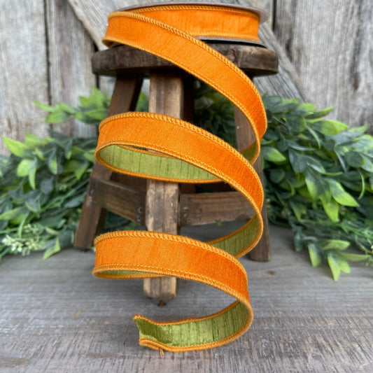 3/4” Orange Green Ribbon, Farrisilk ribbon, wired ribbon
