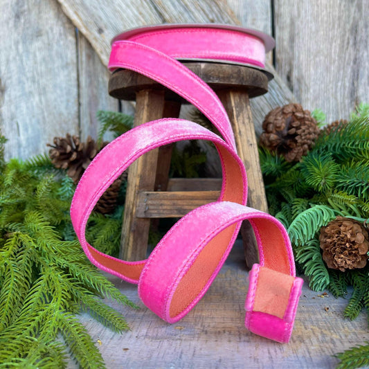 1" Pink Orange Sherbert Velvet Ribbon, Farrisilk Ribbon, Wired Ribbon