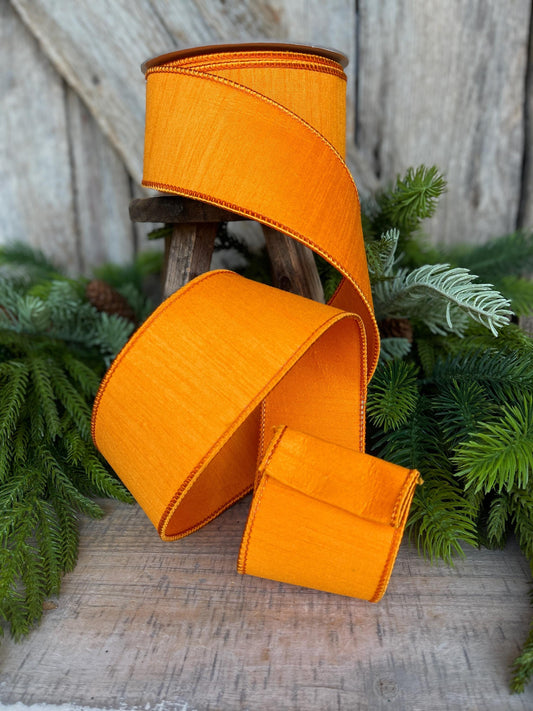 2.5" Orange Dupion Ribbon, Farrisilk Ribbon, Spring Summer Fall Halloween Ribbon