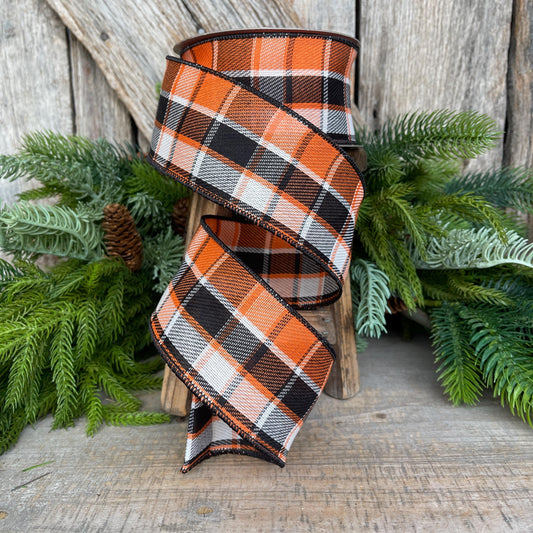 2.5" Fall Halloween Plaid RIbbon, WIred RIbbon, ORange BLack Ribbon