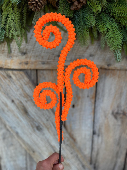 28" Orange Puff Curly Spray, Orange Halloween Spray, Wreath Supply