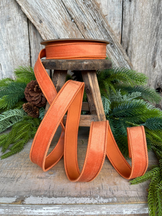 Wired Orange Velvet Ribbon: Fall Halloween Christmas Decor, 1" x 10 Yards
