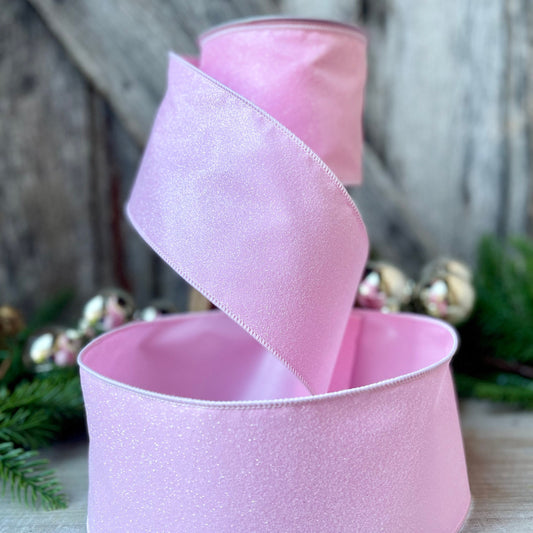 4” Pink Sugar Candy Ribbon, Farrisilk ribbon, wired ribbon