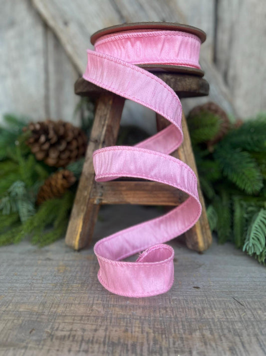 1" Pink Dupioni Ribbon, Wired Ribbon, Narrow Ribbon