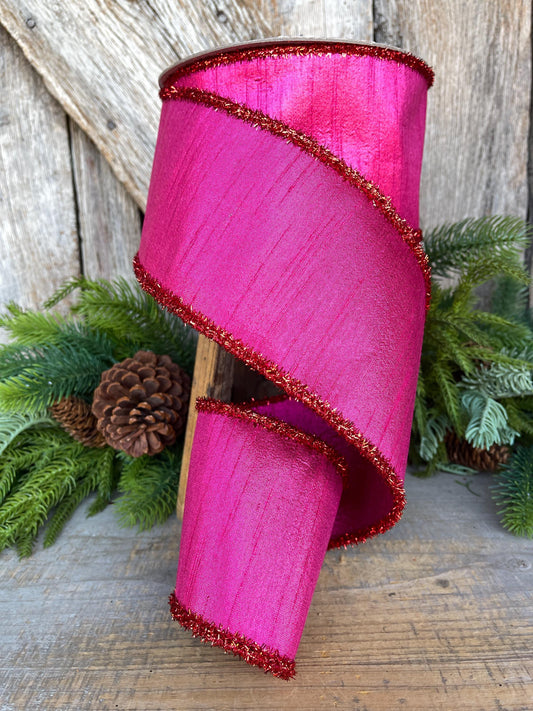 2.5" Hot Pink Tinsel Ribbon, Farrisilk Ribbon, Hot Pink Ribbon for Tree