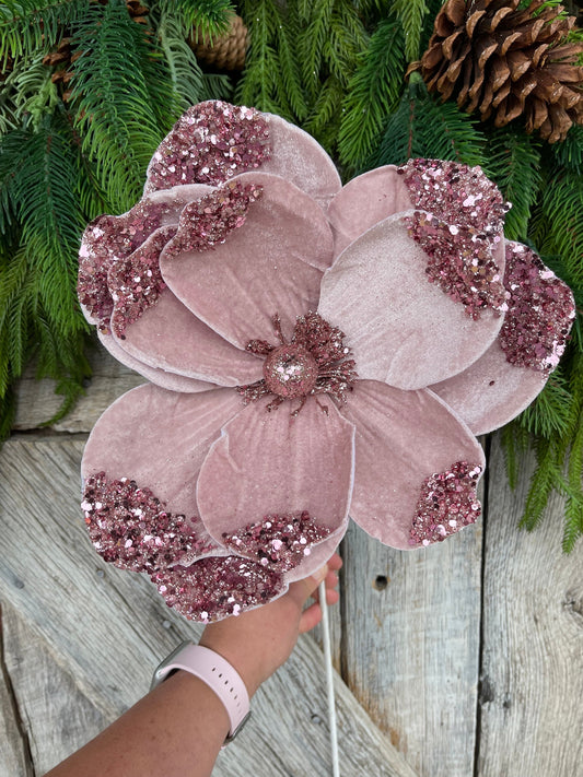 21" Light Pink Velvet Magnolia, Christmas Magnolia, Faux Magnolia Stem