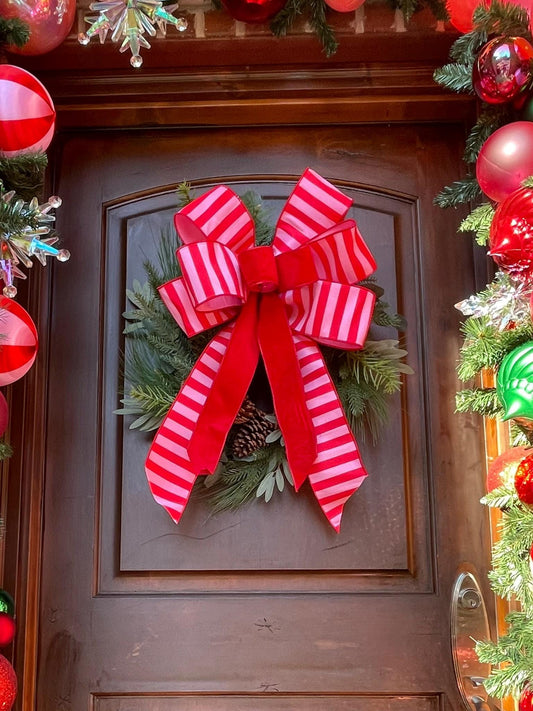 4" Red & Pink Stripe Ribbon, Christmas Ribbon, Pinkmas Ribon