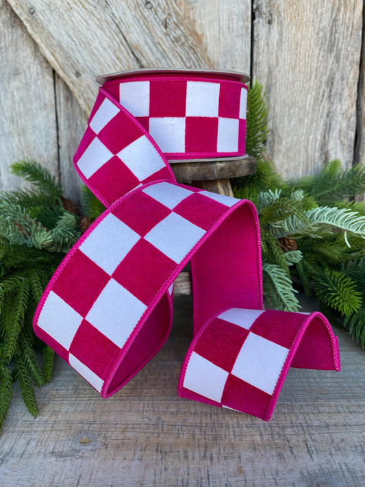 2.5" Hot Pink Maxi Check Ribbon, Wired Ribbon, Farrisilk Ribbon