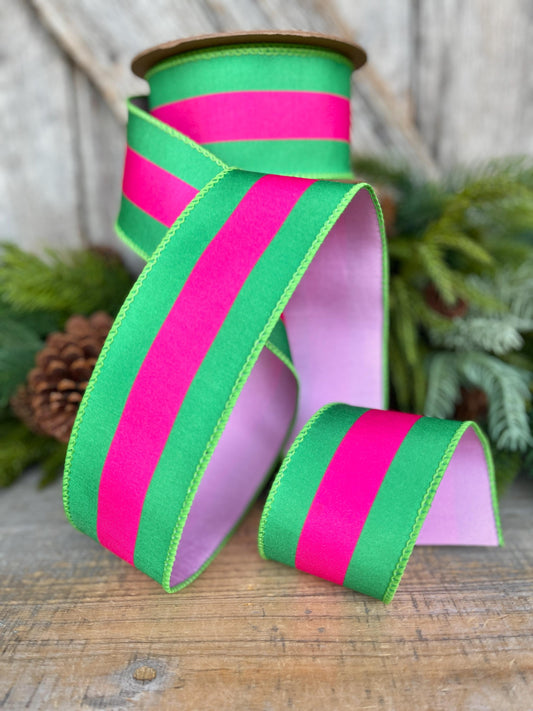 Kelly Green & Hot Pink Ribbon, Christmas Ribbon, 2.5" x 10yds