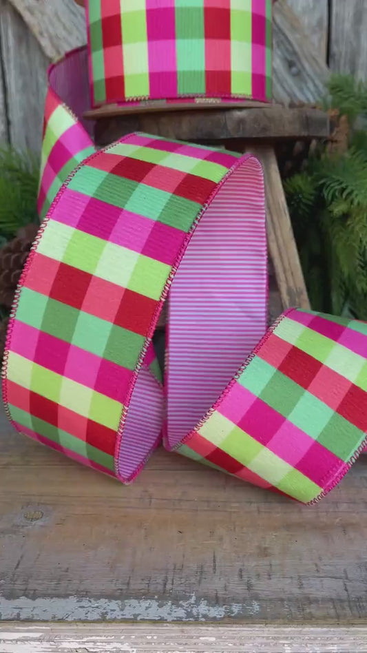 Hot Pink Plaid Ribbon, Christmas Tree Ribbon, 2.5" x 10yds