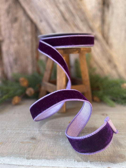 1" Purple Violet Velvet Ribbon, Farrisilk Ribbon, 2 Tone Ribbon