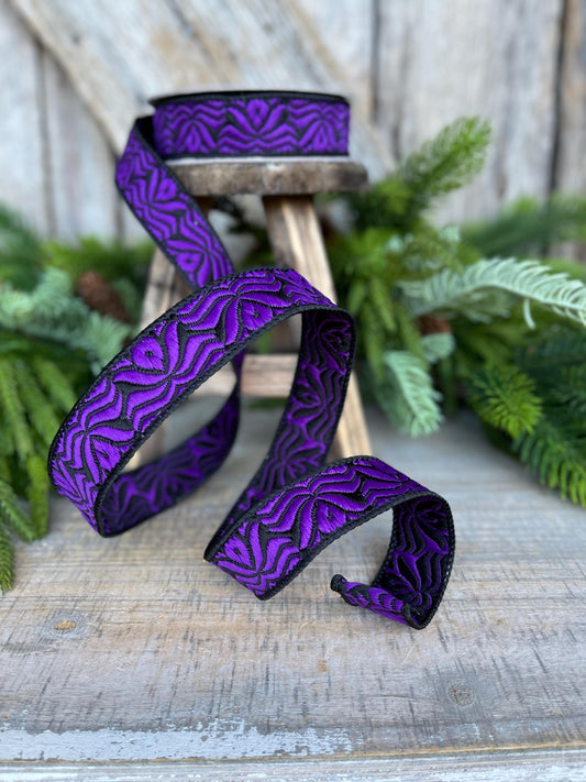 1" Purple Halloween Ribbon, Purple Labyrinth Ribbon, Farrisilk Ribbon