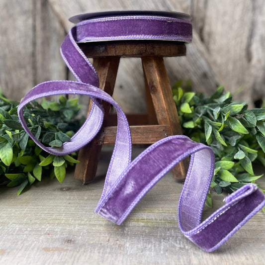 1" Purple Velvet Ribbon, Silken Velvet Ribbon, Farrisilk Wired Velvet Ribbon