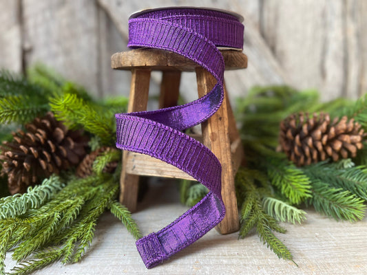 1" Violet Purple Velvet Ribbon, Farrisilk Wired Velvet Ribbon, Christmas Velvet Ribbon