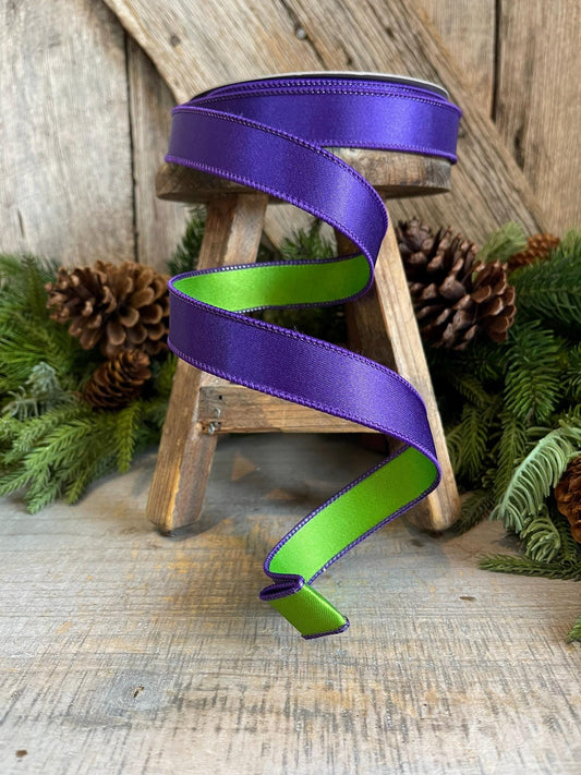 1" Purple Green Satin Ribbon, Farrisilk Ribbon, Wired Ribbon